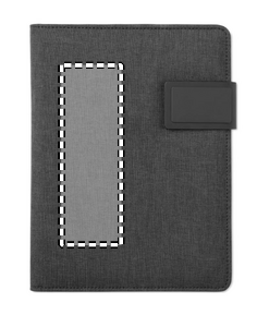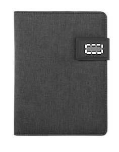 Pellava/PU A5 kokouskansio, jossa magneettisuljin. Sisäänrakennettu varavirtalähde 4000 mAh:n kapasiteetilla, joka riittää älypuhelimen lataamiseen 1-2 kertaa mallista riippuen. Sisäänrakennettu mikro-USB C- tyypin liitin. Sisältää matkapuhelintelineen, 20-sivuisen lehtiön ja useita pieniä taskuja helppoa säilytystä varten.