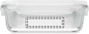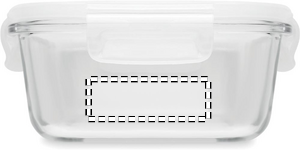Borosilikaattilasista valmistettu 900 ml lounasrasia ilmatiiviillä polypropeenikannella, tuote on mikroaaltouunin kestävä.