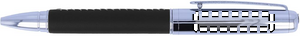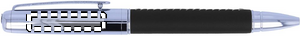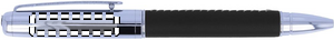 Metallinen kuulakärkikynä hopeakromisella viimeistelyllä ja PU-nahka somisteella, alumiininen säilytyskotelo. Musta muste.