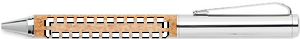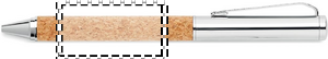 Metallinen kynäsetti kuulakärkikynällä ja rollerkynä korkkirungolla, sinisellä ja mustalla musteella. Pakattuna korkista valmistettuun lahjapakkaukseen. Korkki on luonnonmateriaali, strukturaalinen laatu ja pinnan huokoisuus voi aiheuttaa eroavaisuuksia tuotteissa painatuksen jälkeen
