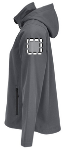 SOL'S RACE HOODED WOMEN, naisten softshell-hupullinen takki, 100 % kierrätettyä polyesteriä Polar fleece vuori: 100 % kierrätettyä polyesteriä 2 kerrosta, Etukiinnitys ja sivutaskut mustalla nailonvetoketjulla Mustat vetoketjunvetimet Huppu kiristysnauhalla Hieman pidempi selkä. Kokojen vastaavuudesta, katso kokotaulukko tuotedokumentaatio-osassa.