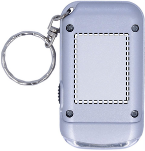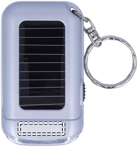 Satiininhopea taskulamppu avaimenperä, kahdella valkoisella LED-lampulla ja aurinkopaneelilla.