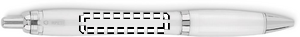 Push button ball pen made from RPET. A simple but very popular design of pen available in various colours for every day use in the office or at home. The casing of the pen is made from recycled PET plastic, making it a sustainable choice. The pen has blue ink.