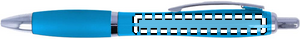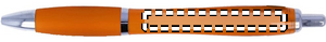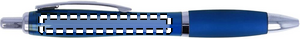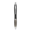 Painomekanismilla varustettu kuulakärkikynä, pehmeä runko ja musta muste.