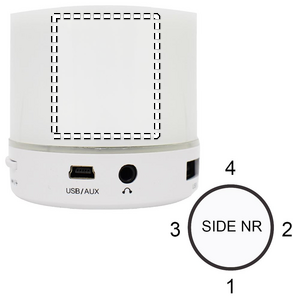 ABS 2.1 langaton kaiutin LED merkkivalolla ja 3 väriä vaihtavaa valoa. Sisältää ladattavan 500 mAh litium akun, SD korttiportin ja AUX / USB- kaapelin. Handsfree-puhelutoiminto, lähtövirta 3 W, 4 Ohm. Arvioitu toistoaika 2 tuntia.