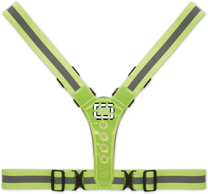 Säädettävät 360° heijastavat valjaat, joissa on 4 LEDiä edessä ja 4 LEDiä takana sekä hopeiset raidat. Mukana 2 CR2032-paristoa. Vain mainoskäyttöön.