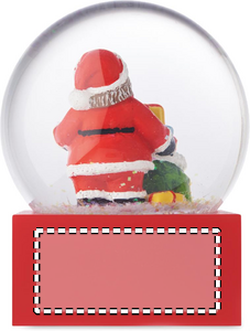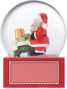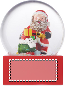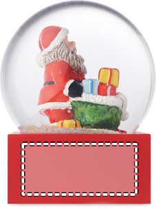 Jouluinen lasinen lumipallokoriste, jossa on polyresiinipohja.