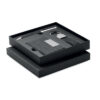 3-osainen lahjasetti lahjapakkauksessa. Sisältää metallisen kierrekuulakärkikynän, jossa on RPET-polyesteristä valmistettu yksityiskohta, RPET-polyesteristä valmistetun avaimenperän ja RPET-polyesteristä valmistetun korttipidikkeen, jossa on metallilevy. Sininen muste.