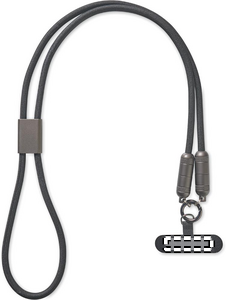 60W RPET kaulanauha jossa on latauskaapeli C-tyyppistä C-tyyppiin sekä puhelin pidike.
