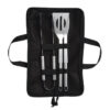 Kolme ruostumattomasta teräksestä valmistettua grilli atulaa, pakattuna vetoketjulliseen kuitukangaspussiin.