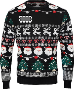 Jouluinen 10 LED-valoilla varustettu akryyli villapaita. Koko: S/M. Ilmesty tyylillä töihin tai perheen jouluillalliselle tämän juhlavan puseron kanssa. Irrotettava paristolokero. Mukana 2 CR2032-paristoa.