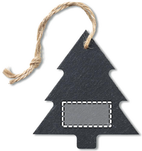 Kuusen muotoinen liuskekivi kuusenkoriste nauhalla.