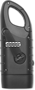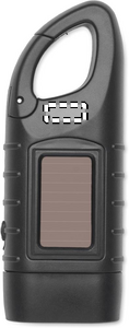 Taskulamppu, jossa on 3 valkoista LED-valoa. Latautuu sekä aurinkopaneelilla että dynamokammella. Varustettu 40 mAh akulla ja valmistettu kierrätetystä ABS-muovista.