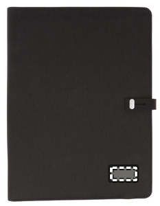A4 PU- portfolio langattomalla latausjärjestelmällä, lähtövirta DC5V/1A. Sisältää 4000 mAh vara-akun mikro USB C portin liittimellä, 20 sivuisen muistikirjan, korttikotelon ja kynänsilmukan.