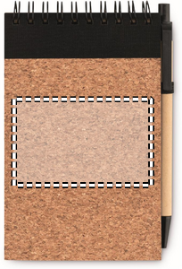 A6 korkki kantinen muistikirja, 70 viivoitettua sivua ja kierrätetty kuulakärkikynä mustalla musteella. Kynän runko on valmistettu kierrätetystä kartongista, yksityiskohdat valmistettu maissi PLA. Korkki on luonnonmateriaali, strukturaalinen laatu ja pinnan huokoisuus voi aiheuttaa eroavaisuuksia tuotteissa painatuksen jälkeen
