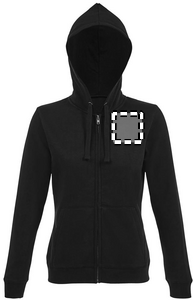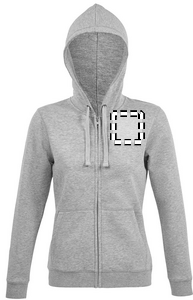SOL'S SPIKE NAISTEN. Miesten vetoketjullinen huppari, 80 % rengaskehrätty puuvilla - 20 % polyesteri Harjattu vuori, Ulkopuoli: 100 % puuvilla FLEECE 280 LSF (Low Shrinkage Fabric), Asetetut hihat, 2 etutaskua, Leikattu ja ommeltu, Vuorattu huppu, jossa on sävyyn sopiva kiristysnauha, 2x2-ripsiset hihansuut ja helma. Puolikuun muotoinen sisäkaulus, teipattu kaula-aukko, YKK-vetoketju. OEKO-TEX®. Myydään vain painatuksen kanssa.