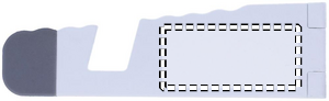 ABS- muovinen puhelimen taikka tablettimen pidike, harmaat silikoniset päät.