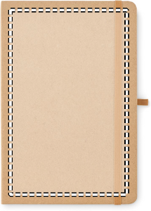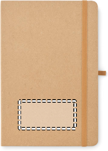 A5-kokoinen vihko, jossa on pahvikansi, 80 arkkia kierrätyspaperia (160 sivua), 25 arkkia muistilappuja ja 25 muistilappua. Joustava sulkuhihna ja kynälenkki.