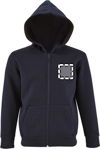 SOL'S STONE KIDS, KIDS' ZIP HOODIE, 50% rengaspunottu puuvilla - 50% polyesteri BRUSHED FLEECE 260, Asetetut hihat, 2 kengurutaskua, Huppu, Ribbed hihansuut ja pohja, Tubular. Kokojen yhteensopivuudesta, katso kokotaulukko tuotteen dokumentaatio-osassa.