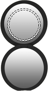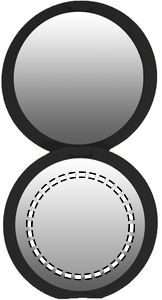Kumisella pinnalla varustettu kaksipuoleinen käsipeili, suurentavalla ja vakiopeilillä.