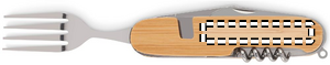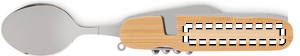 Metal multi-function folding camping cutlery set in wooden casing. One tool for everything when you're outdoors, backpacking or camping. All tools can be folded inside the wooden casing when not in use. It has 5 functions and includes a fork, spoon, can opener, wine opener and knife. You can separate the pieces in 2. Wood is a natural product, there may be slight variations in colour and size per item, which can affect the final decoration outcome.