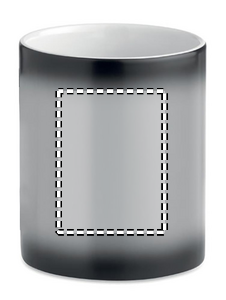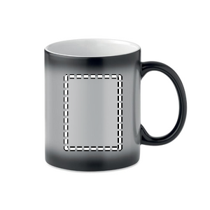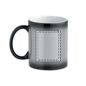 Keraaminen muki 300 ml, erikoispinnoite sublimaatiota varten. Muki muuttaa väriä ja tuo esiin painatuksen, kaadettaessa mukiin (vähintään) 50 ° C lämpöistä nestettä. Yksittäispakattuna valkoiseen pahvilaatikkoon.