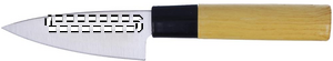3-osainen japanilaistyylinen veitsisetti mustassa pahvisessa lahjapakkauksessa, ruostumattomasta teräksestä valmistetut terät, PP-muovikahvalla.