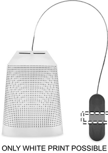 Ruostumattomasta teräksestä valmistettu irtoteehaudutin teepussin muodossa lautasella. Suuri teesiivilä silikonikahvalla.
