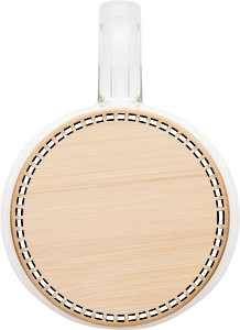 Kaksiseinäinen borosilikaattilasimuki kahvalla ja bambukannella. Tilavuus: 450 ml.