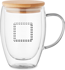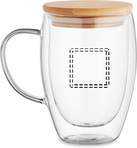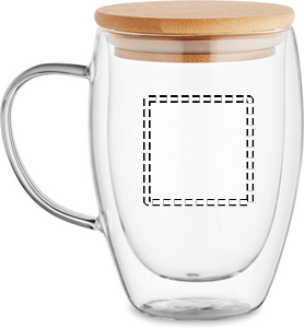 Kaksiseinäinen borosilikaattilasimuki kahvalla ja bambukannella. Tilavuus: 300 ml.