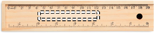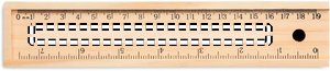 12 osainen kirjoitusvälinesetti, sisältää 2 lyijykynää, 6 värikynää, teroittimen, pyyhekumin ja viivaimen. Viivain on yhdistettynä rasian kanteen.