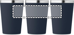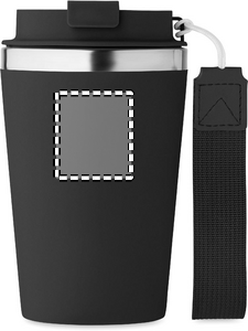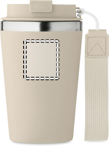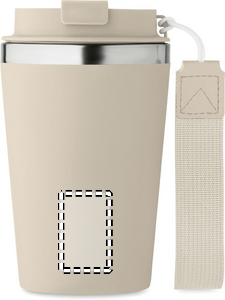 Kaksiseinäinen juomapullo kierrätetystä ruostumattomasta teräksestä (90 % kierrätettyä ruostumatonta terästä ja 10 % ruostumatonta terästä), jossa on PP-ulkokerros ja RPET-rannehihna. Tilavuus: 350 ml.