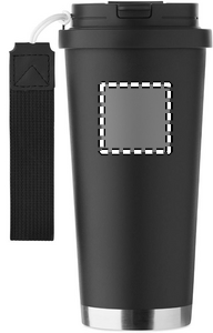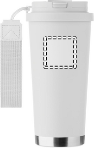 Kaksinkertainen kierrätetystä ruostumattomasta teräksestä (90 % kierrätettyä ruostumatonta terästä ja 10 % ruostumatonta terästä) valmistettu muki, jossa PP-kansi (2-in-1 juoma- ja pillikansi) ja RPET-kantohihna. Vuotamaton. Tilavuus: 500 ml.