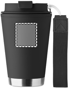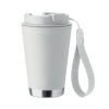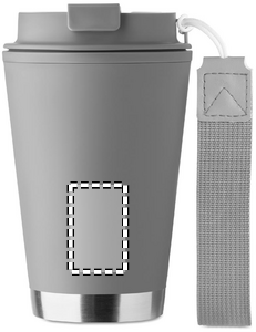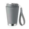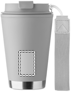 Kaksiseinäinen muki, jossa on PP-muovinen sisäosa, kierrätetystä PP-muovista valmistettu ulkoseinä, kierrätettyä ruostumatonta terästä oleva yksityiskohta sekä rannehihna kierrätetystä RPET-materiaalista. Tilavuus: 300 ml.