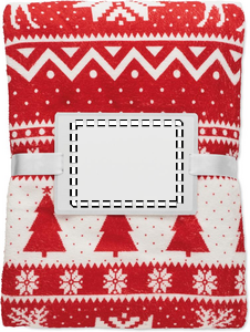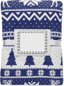 190 gr/m² RPET-korallifleecehuopa, jossa on talvikuvio. Kääritty nauhaan ja tulostettavaan korttiin.