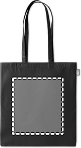 RPET-laminoitu kuitukangaskassi, pitkillä kahvoilla. Klassinen ostoskassi, joka on valmistettu päivittäistavaroiden tai muiden tavaroiden kuljettamiseen. Kanna kassia käsissäsi tai olkapäälläsi pitkin kahvojen avuilla. Kierrätetty PET-muovi tekee tästä kassista kestävämmän valinnan. 100 g / m².