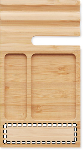 Bamboo desk phone stand with paper clips and sticky notes. An organized office is a productive office. Keep your desk clean and use an organizer to store smaller office supplies in one place. This bamboo stand also has a holder for your smartphone. Bamboo is a natural product, there may be slight variations in colour and size per item, which can affect the final decoration outcome. FSC®-certified | FSC 100%, N5.7, FSC-C213206