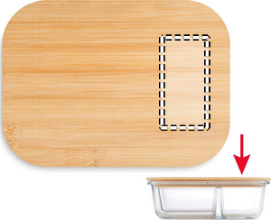 Lounasrasia borosilikaattilasista, jossa 3 lokeroa, bambukansi ja silikoninauha. Tilavuus: 800 ml. Bambu on luonnontuote, värissä ja koossa voi olla pieniä vaihteluita kappalekohtaisesti, mikä voi vaikuttaa lopulliseen merkkaustulokseen.