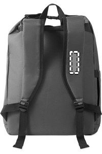 15'' rullattava läppärireppu, joka on valmistettu 600D RPET -polyesterikankaasta ja jossa on 210D RPET -pehmustettu vuori. Vetoketjullinen etutasku, joustava sivutasku ja säädettävät olkahihnat.