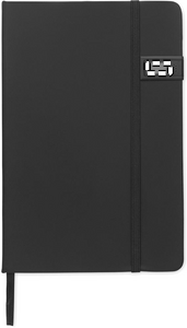 A5-kokoinen kovakantinen muistikirja, joka on valmistettu 58 % kierrätetystä polyesteristä ja 42 % PU:sta. Mukana integroitu 16 Gt:n USB-tikku. Kovakantinen. 160 viivoitettua sivua (80 arkkia) kierrätyspaperista. Sopiva joustava suljinnauha ja kirjanmerkkinauha FSC®-certified | FSC MIX CREDIT, P7.1, FSC-C213206
