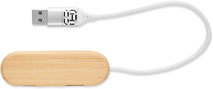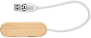 3-porttinen 2.0 USB-keskitin bambua. Lähtö: 2 x A-tyypin ja 1 x C-tyypin liitännällä. Kaapelin pituus 24 cm.