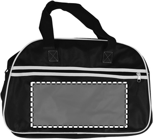 Vintage urheilulaukku PCV- muovista, mattapintainen lopputulos. Valkoisilla yksityikohdilla, sivutasku vetoketjulla ja säädettävä olkahihna.