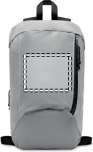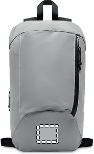 Heijastava reppu 600D polyesteristä. Repussa on vetoketjullinen päällitasku ja pehmustettu selkäosa.