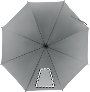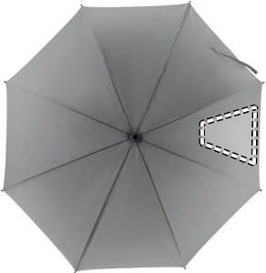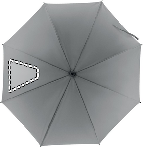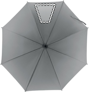 Heijastava tuulenkestävä sateenvarjo. 23 tuuman manuaalisesti avattava varjo jossa on lasikuitu varsi ja ruoteet. Mustat muoviset kärjet ja yläosa sekä musta kumipäällysteinen kahva.