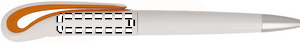Kiertomekanismilla varustettu ABS-muovinen kuulakärkikynä, sinisellä musteella.