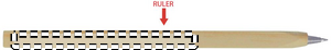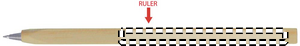 Puinen viivotin kynä, sinisellä musteella.