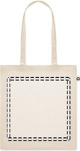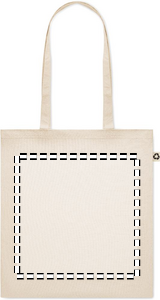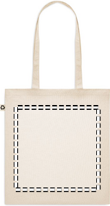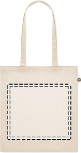 140 gr/m² kierrätetystä puuvillasta valmistettu kassi (65 % kierrätettyä puuvillaa, 35 % tavallista puuvillaa), pitkillä kahvoilla. Ota tämä kestävä ostoskassi mukaan päivittäisiin ruokaostoksiin tai käytä sitä tapahtumissa. Pitkien kahvojen ansiosta tätä kantokassia on kätevä kantaa olkapäällä.